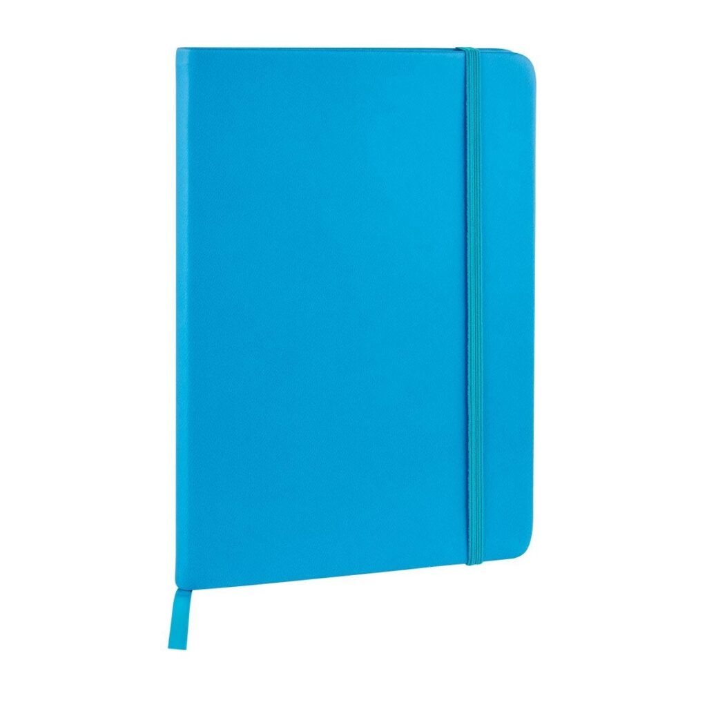Libreta con 80 hojas de raya. Incluye separador de hojas y elástico para cerrar.